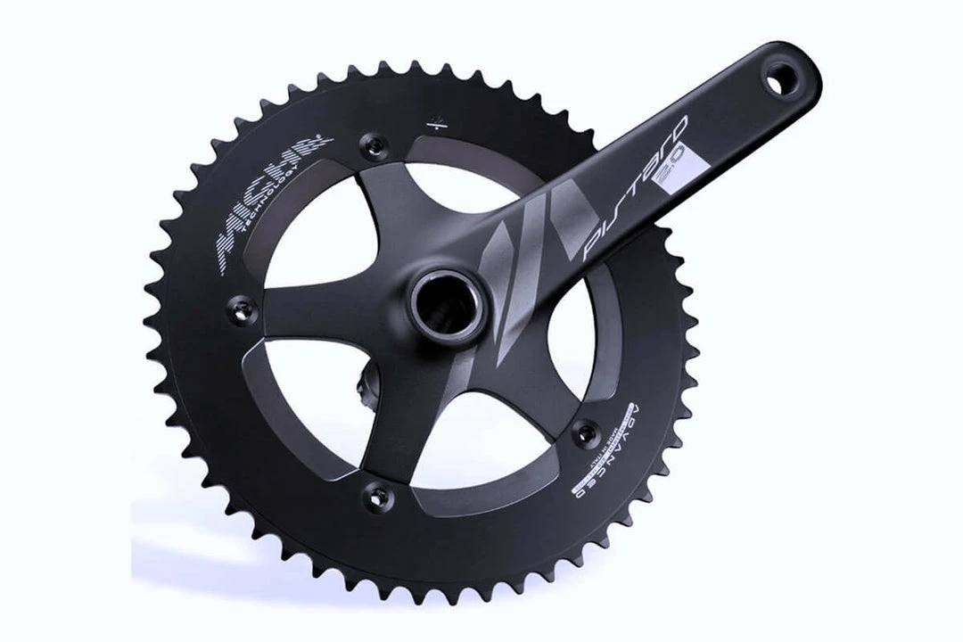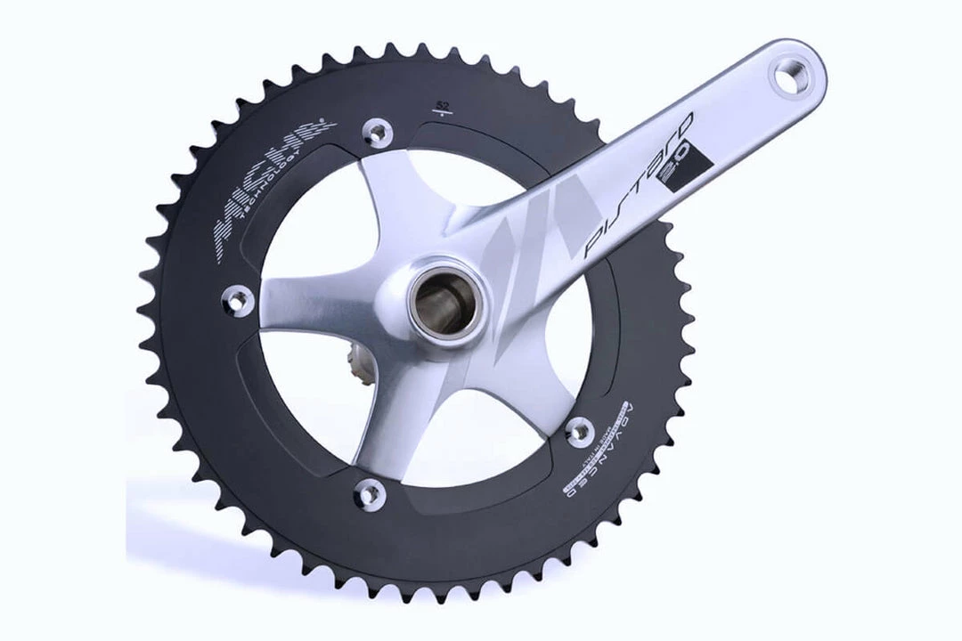 An external bearing style chainset specifically for track. The Pistard is a high performance forged chainset and designed to be used with Evo Max Bottom Bracket cups.