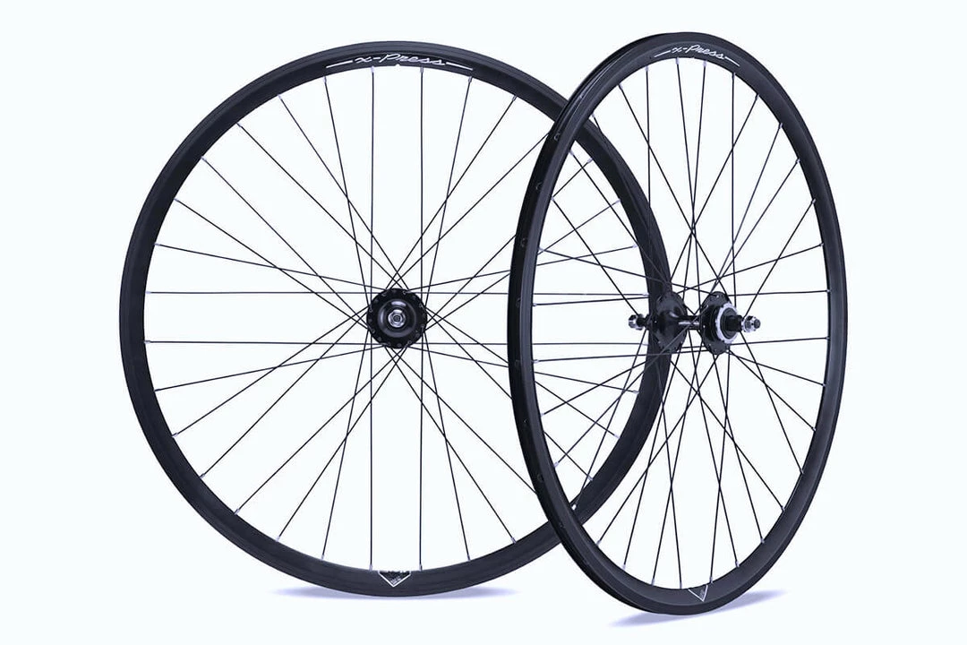 Miche Xpress are fixie-style wheels with a medium-profile alloy rim. They have a double thread on the large-flange hub that can be used for either a fixed sprocket or freewheel, so they offer great versatility. Cross spoke lacing on both the front and rear wheels ensures rigidity and resistance, while the all black finish provides a distinctive ‘street’ look and feel.