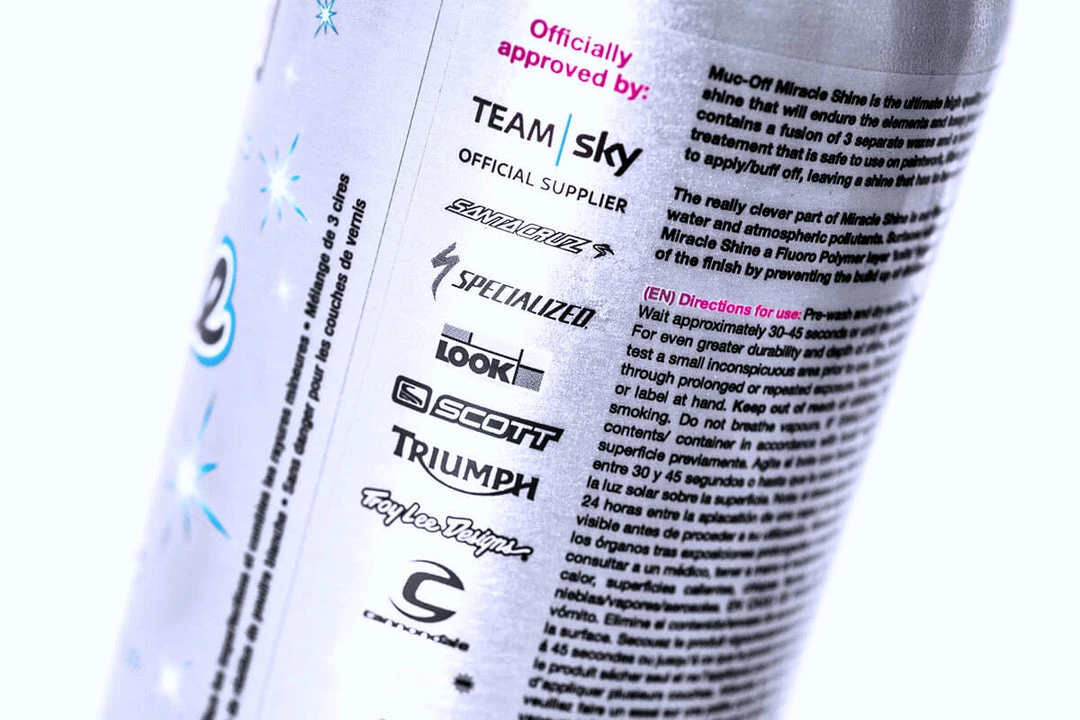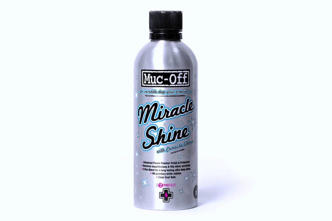 Let’s not beat around the bush, you want a high quality polish and protectant that delivers a deep and luxurious shine for your bodywork or frame, Muc-Off Miracle Shine is the product for that job. Not only does the Miracle Shine give you amazing reflective results – but it also covers the treated areas with a microscopic protective layer against atmospheric pollutants, thanks to it’s Fluoro Polymer Technology!