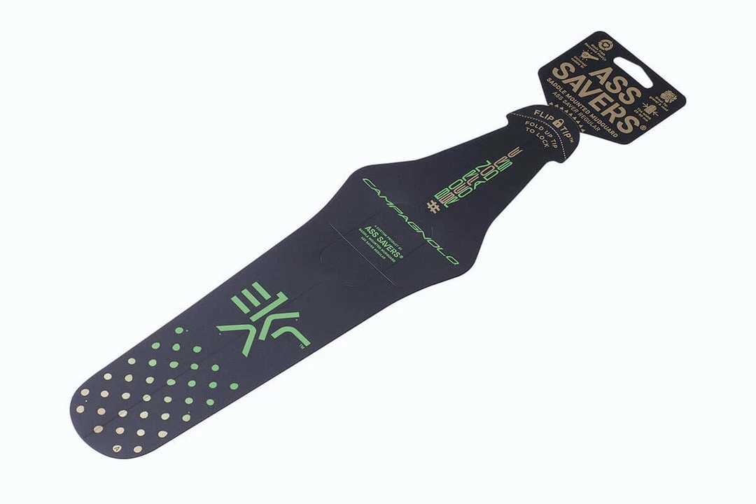 The new Ass Saver mudguard is much simpler to install than previous models, even with an undersaddle bag. The secret that turns a simple piece of plastic into an excellent mudguard lies in how you fold it before use. All the fold lines have been engineered carefully to allow the blocking mechanism and self-centering to work by fully exploiting the elastic load and resistance of the materials.