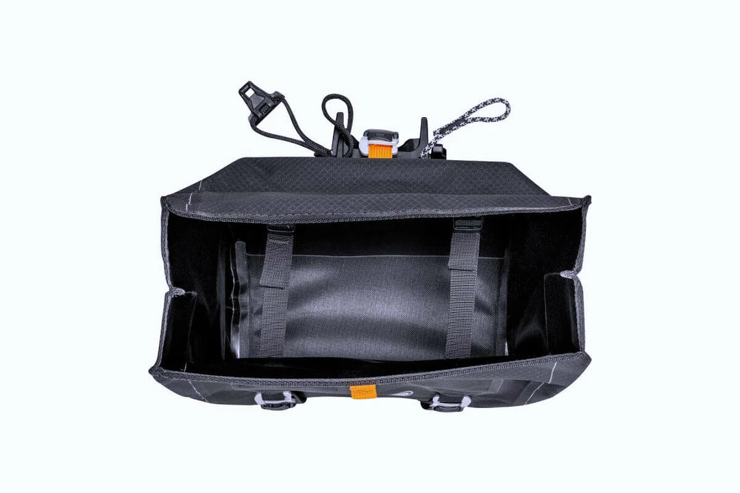 The handlebar pack QR has an 11-liter volume, weighs only 530 grams and is loaded from above. In addition to bikepacking, this pack would be a great asset for long gravel rides or races thanks to its narrow 32 centimeter design.Lateral outer pockets allow small accessories or snacks to be stowed away yet accessible while riding. The PVC-free bag is made of abrasion-resistant nylon fabric and is, of course, sustainably produced in Germany. The maximum load is five kilograms.