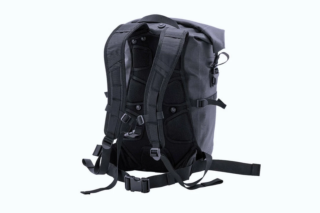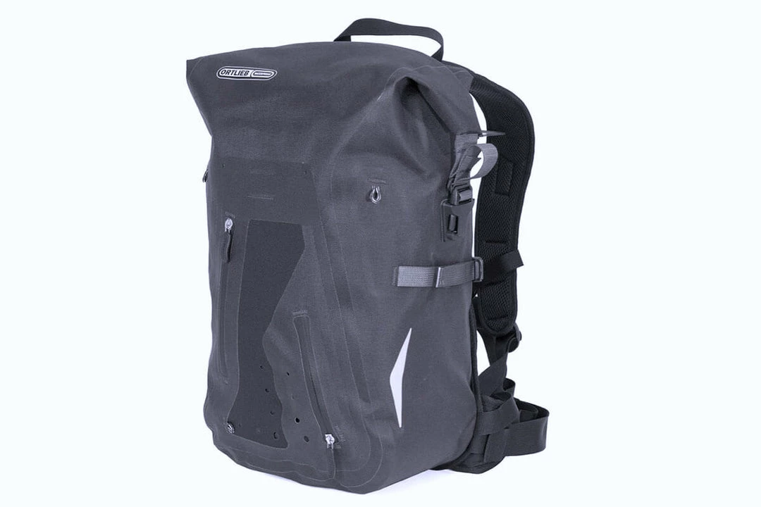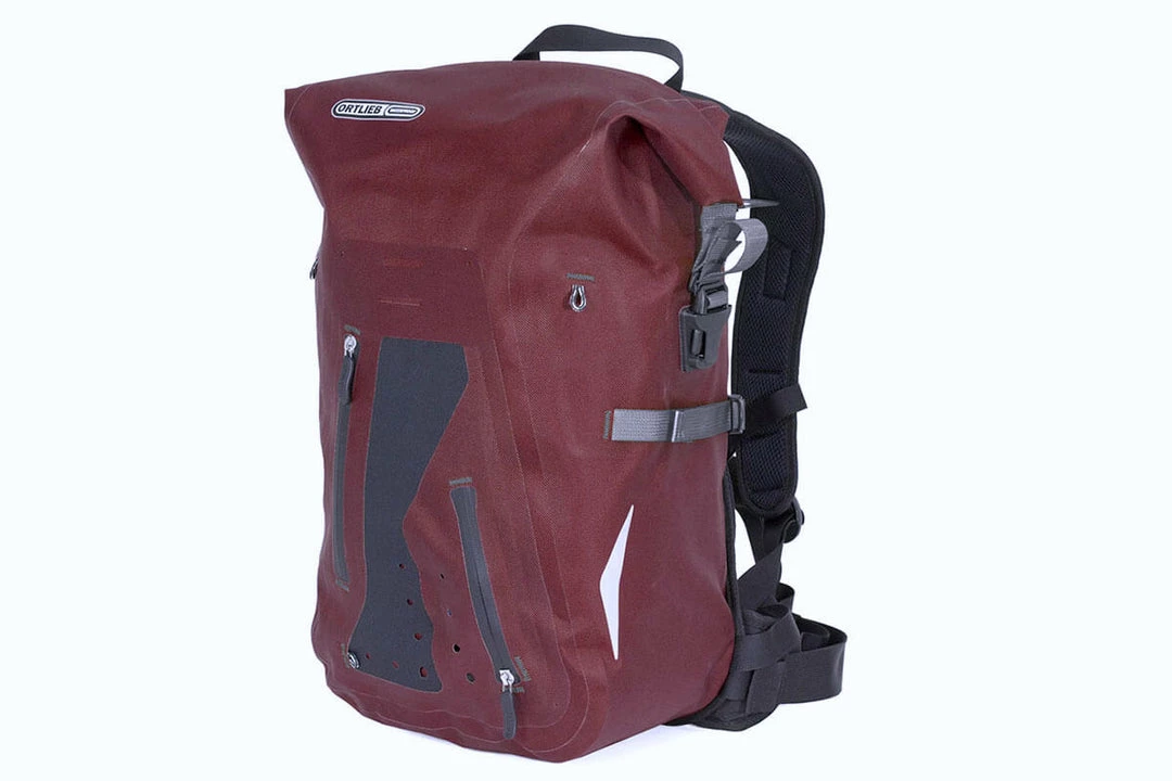 A real favourite for weekend explorations, with its padded harness system and waist strap it offers adjustability and excellent ventilation in combination with carrying comfort and perfect fit. The stowaway helmet flap requires little space inside a concealed front pocket. The waterproof Packman Pro2 further features a roll closure with compression straps for packing and compressed volume. Other features include an integrated pocket for an optional hydration system (not included), and two lateral reflectors for visibility at night and in bad weather conditions.