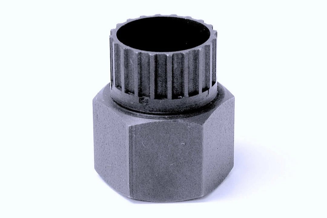 Part of a comprehensive range of freewheel removal tools. Oversized centre hole and thin wall design allows use without removal of cones and locknuts.