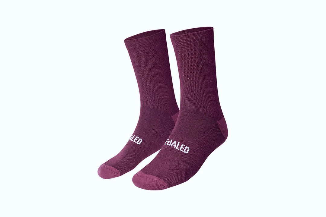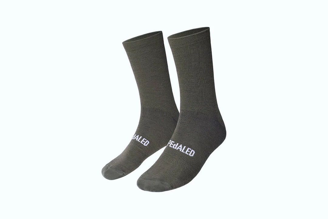 Cycling socks made for cool weather from a blend of technical synthetics and the natural performance fiber merino wool for better breathability and comfort.