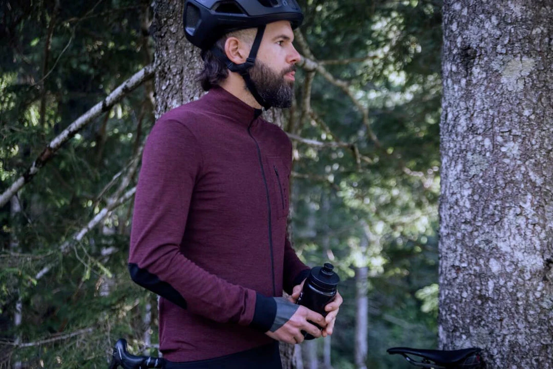 An everyday long sleeve men’s cycling jersey made from a merino/poly blend for cool weather performance and comfort.