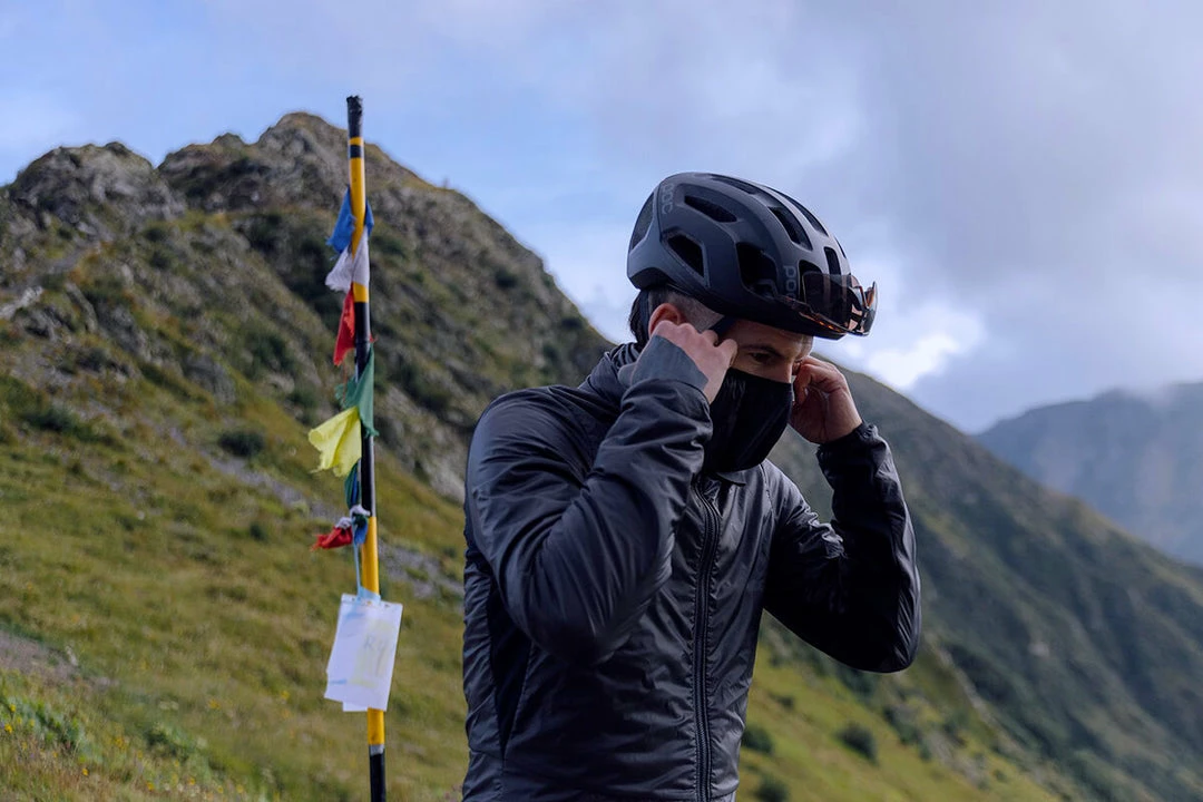 A double-sided winter cycling neck warmer designed with lightweight, insulating Alpha® fabric by Polartec®.