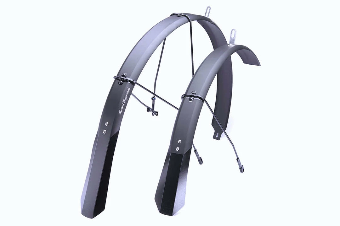 They provide full-wrap coverage, even shielding your shoes and riders on your rear wheel thanks to extra long and super flexible polypropylene mudflaps. Safety release tabs ensure your wheels keep turning even if debris gets lodged between the fender and tire. The 700×55 Full Metal Fenders easily mount to bikes with eyelets using all stainless steel hardware which may be replaced as needed.