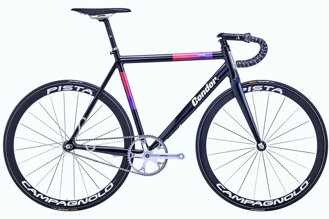 The Lavoro is a well-rounded performance track frame. Custom-butted, superlight aluminium tubing is aggressively shaped for performance on the boards. Welded by hand to obtain maximum structural integrity, the Lavoro is designed to withstand the demands of track racing. Straight bladed tapered carbon forks provide stiffness for pin sharp handling. The Lavoro is an ideal starter track frame that is just as suitable for our pro riders. A proven competition ready machine. Condor Cycles is the official supplier to the London Velodrome and Lee Valley Velopark.