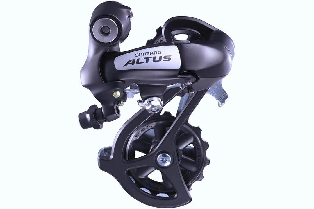 Altus mountain bike rear derailleur with light action operation and over-size pulleys for a wide gear choice.