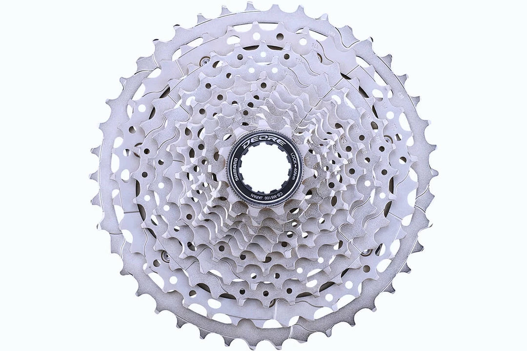 Deore M5100 11-Speed cassette featuring light weight minimal design sprocket carrier.