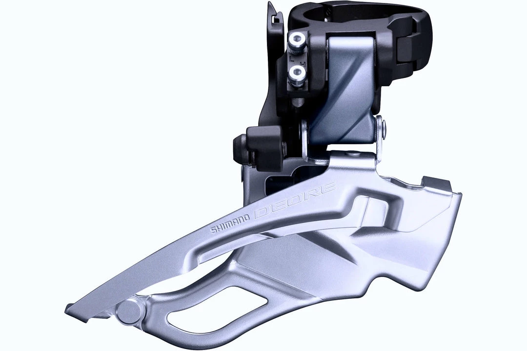 Wide link design Dyna-Sys 10-speed Deore trekking front derailleur.