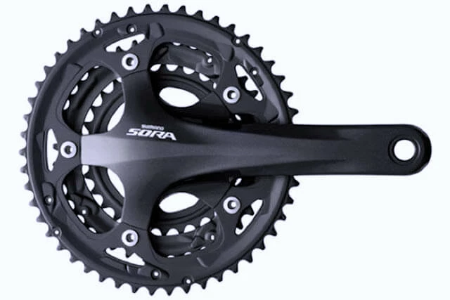 2-piece design double-ring 9-speed chainset from the excellent value Sora range.