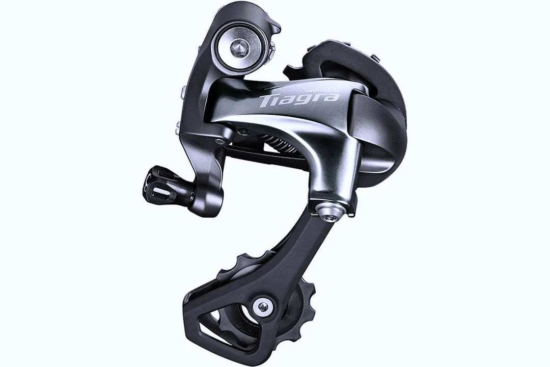 Offering pro-level features, the 10-speed compatible Tiagra rear derailleur gives high performance at a low price. Wide link design increases rigidity and service life.
