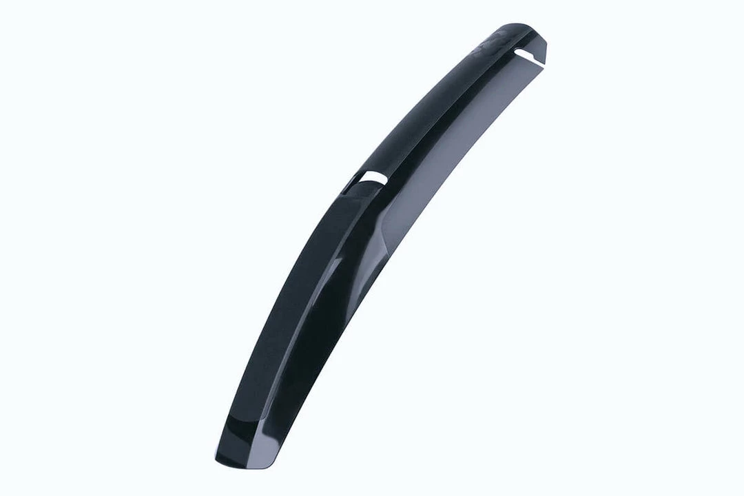 The extension made of black, impact-resistant plastic can be easily clipped onto the tried and tested SPEEDROCKER rear mudguard, thus extending it by 170 mm. It can be mounted and removed without any tools in just a few seconds. The bigger space between the tyre and the mudguard at the lower end also allows it to deflect optimally any spray water and mud. This not only protects the rider’s own back but also their cycling companion from any splashes of mud.