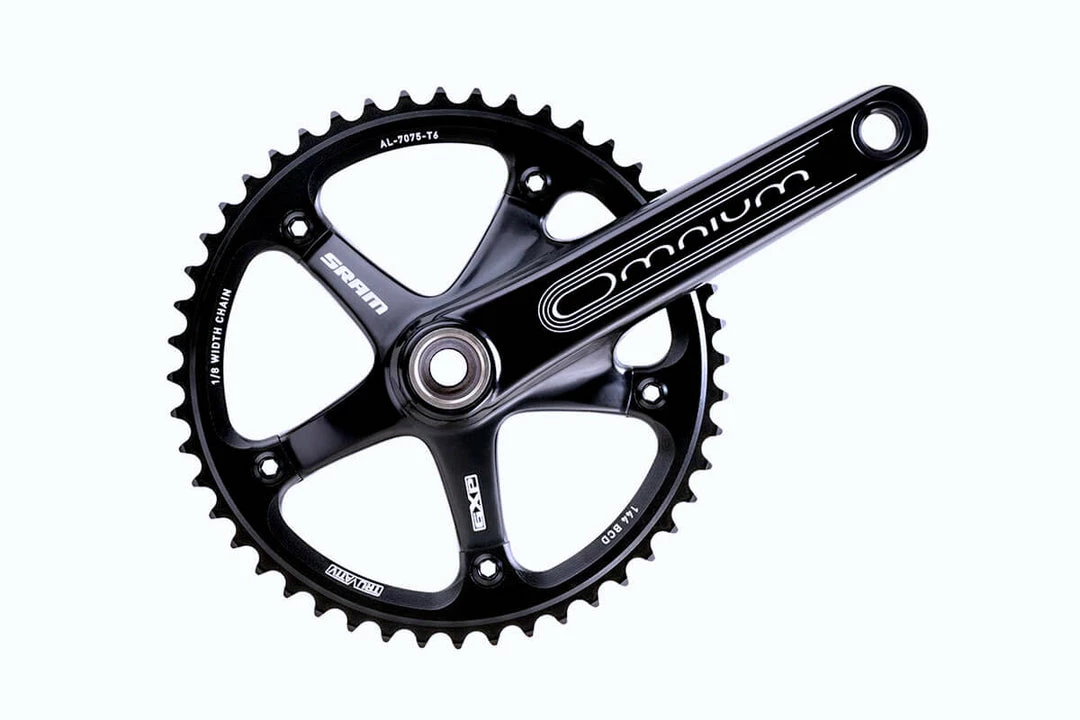 The purists’ choice for street and track performance. The new Omnium track crankset is the first external bearing track crank in the world. Designed for world-class track racing, but also at home as the ultimate “fixie” crankset, the Omnium features SRAM’s strongest and stiffest alloy, 7050-T6. The full 5mm thick 7075-T6 chainwheel was developed for use only with 1/2 x 1/8 chains. Reports from our test riders suggest that this is the stiffest crank they’ve ever ridden.