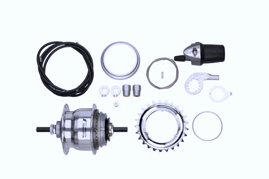 Sturmey Archer 8 Speed hub is a modern hub gear kit that perfect for riders who want to increase the versatility of a singlespeed frame. Constructed from 6061 aluminium the kit includes hub, twist shifter, cable, mounting hardware & 25t 1/8″ cog