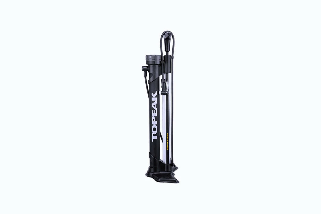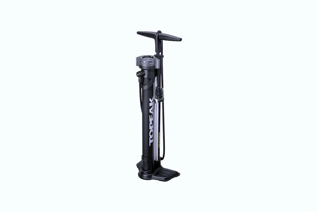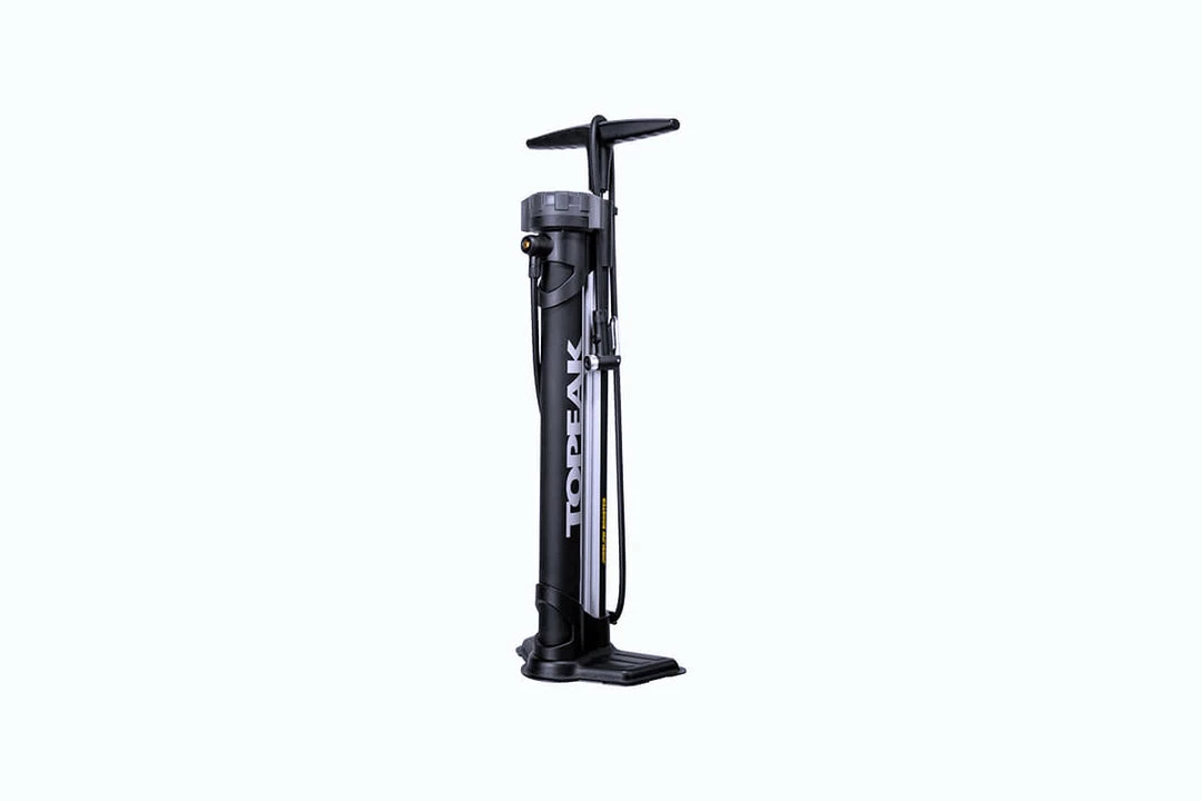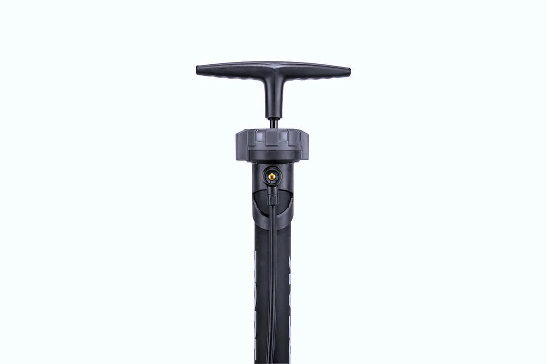 Half air compressor, half pump. The JoeBlow® Booster pump just made it easier to install tubeless tyres. This pump has an integrated aluminum air chamber that stores an air charge of one liter, up to 160psi / 11 bar, to quickly fill your tyre and ensure the proper installation on a tubeless rim, just like a shop compressor.