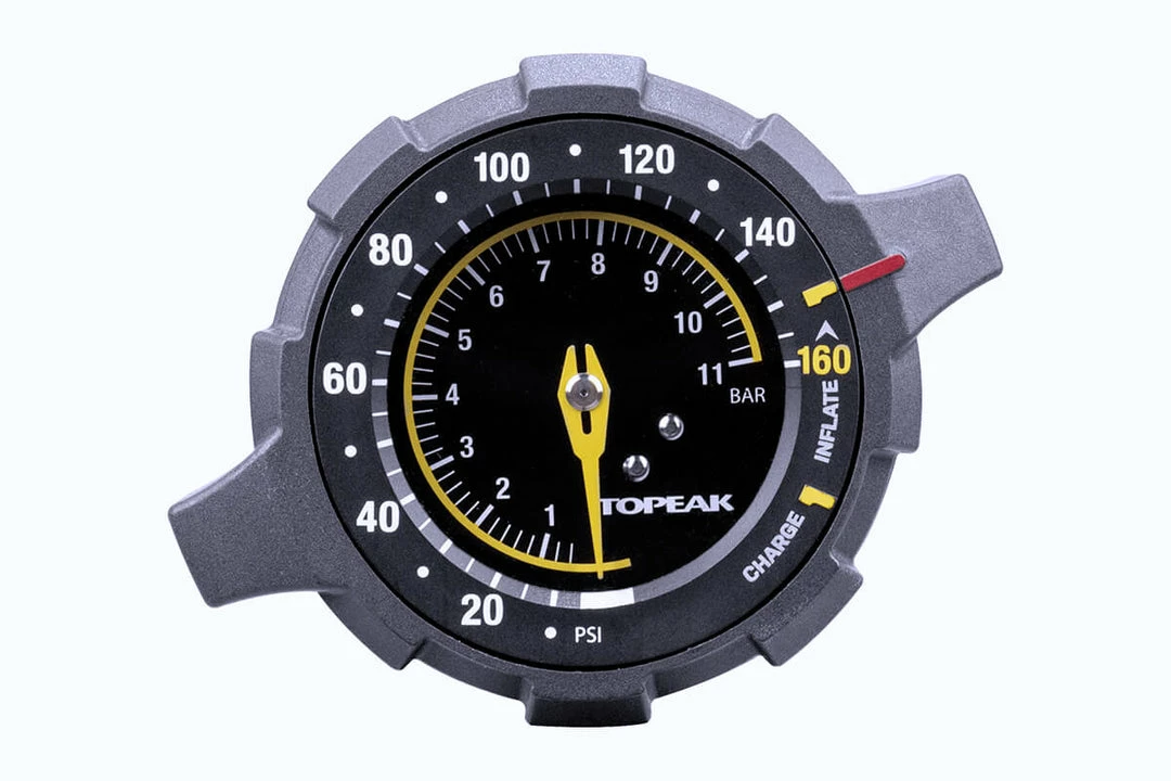 Once you flip the selector from “CHARGE” to “INFLATE” mode, air bypasses the chamber and flows directly into your tyre like a standard pump. The top-mounted easy to read gauge, air release button and comfortable dual density polymer grip, combined with its extra-long hose and stable base makes mounting tubeless and standard tyres a breeze!
