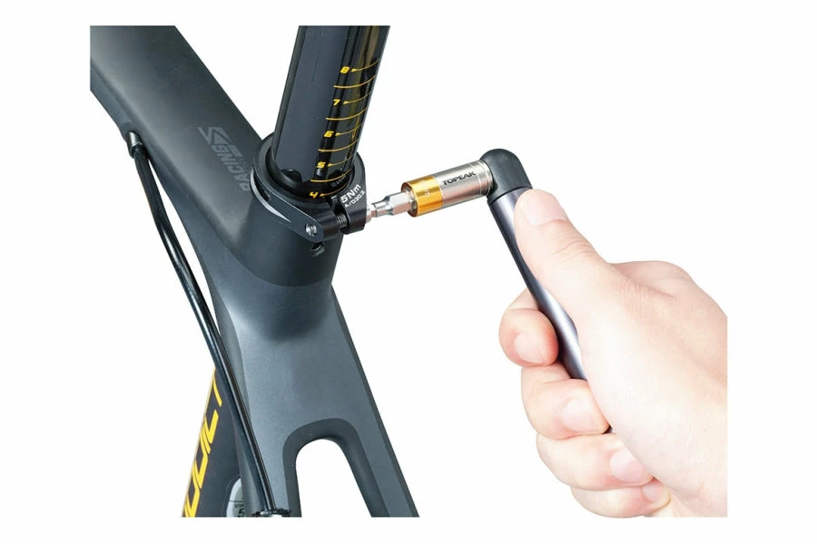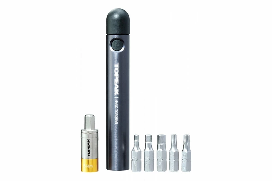 The slimmest and most compact preset torque wrench available. It is a precision-crafted, high quality tool for either the home mechanic, professional bike shop, or your own jersey pocket. Today’s high-tech carbon fiber frames, components and electronic shifting requires exact torque specifications for operational safety and performance and the Nano TorqBar delivers what you need. Available in three preset values, 4Nm, 5Nm and 6Nm and includes the 5 most popular tool bits. Two of your favorite bits can be carried in the handle of the Nano TorqBar for immediate use and even greater portability during rides.