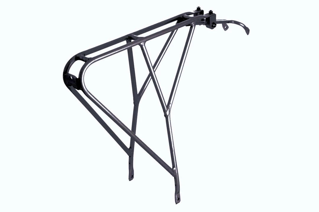 Sleek and compact design, the Velocity rear rack is ideal for lightweight load carrying. The narrow angled design keeps panniers close to the wheel for better cornering and improved performance. Lightweight high-strength design, TIG Welded 10mm alloy tubing and Stainless steel fittings. Fits up to 28C or 1.25 tyres.