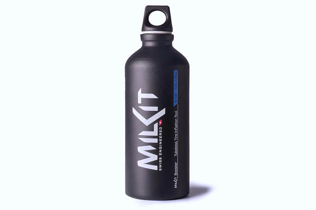 The milKit booster is a modular system that allows you to use larger bottles for home use or stubborn tyres and smaller, more portable bottles for enhanced portability and easier to mount tyres.