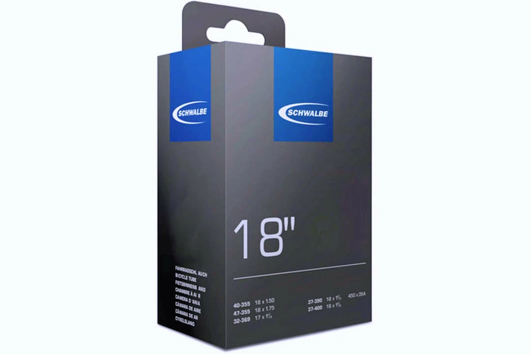 18 inch inner tube with with different types of valves. Extreme air pressure stable! The rubber compound makes it possible: less air leakage and less to pump. Quality control for safe riding pleasure: each Schwalbe tube is checked twice on air retention in the factory.
