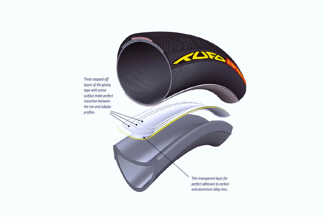 A special two sided tubular gluing tape for installing tubulars on carbon or aluminium alloy rim. This tape is very different from all the similar products on the market. It has never been easier and faster to glue a tubular tyre. No waiting time for glue to dry; the activated surface of the gluing tape facilitates perfect adhesion of a tubular to a rim after a few metres of riding. No messy glue on rims, tubulars or hands, no harmful vapors. Removable red backing strip makes centering of a tubular very easy.
