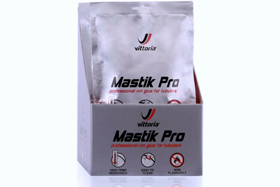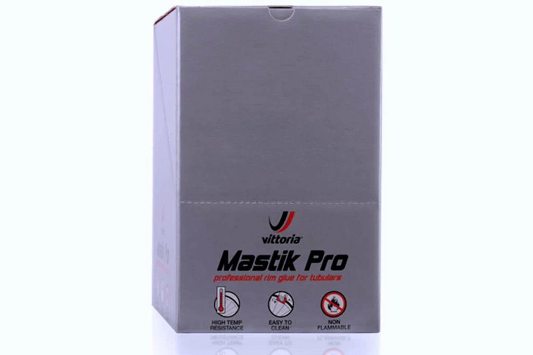 Mastik Pro is the latest and best development in tubular glue to date. It addresses all known challenges for gluing your tubulars. With its quick and easy application, it is possible to glue two tyres in under an hour. Mastik Pro cleans easily with water, making mess on your hands and equipment a challenge of the past. It also has a much increased resistance to high temperatures, contributing strongly to much higher safety especially for long descents. The new Mastik Pro is non-flammable, so it can be carried everywhere regardless of the mode of transport. Glued tubulars are rideable in 24 hours and the packaging is especially designed to use a satchel per wheel.