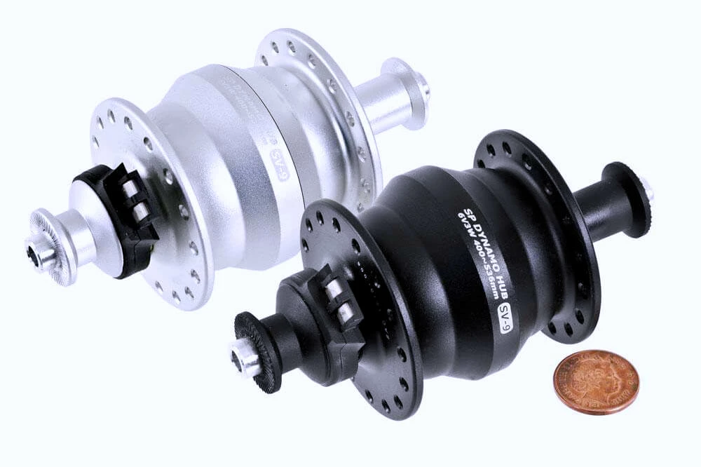 Unique aerodynamic shape, low resistance and super light weight, make for and incredibly effecient and compact dynamo hub.